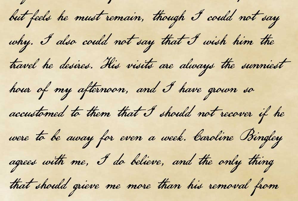 Page 6: love William Cowper and I have brought him round on Anna Barbauld. He talks too of his travels, those he has completed and those still to come. I do believe he longs to see more of the world as soon as possible, but feels he must remain, though I could not say why. I also could not say that I wish him the travel he desires. His visits are always the sunniest hour of my afternoon, and I have grown so accustomed to them that I should not recover if he were to be away for even a week. Caroline Bingley agrees with me, I do believe, and the only thing that should grieve me more than his removal from the village would be for the occasion to be his marriage to such a woman. I do not believe she would appreciate the clutches of wildflowers, nor the unmistakable scent of citrus, nor the way his eyes widen when one teaches him a new bit of