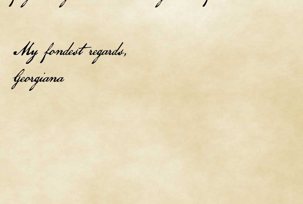 Page 6: thankful for are the sisters she gave me and the certitude that happiness can be fought for. I will fight for mine each day, and will feel it more acutely the closer I come to you and to this frightening and exhilarating new life. My fondest regards, Georgiana