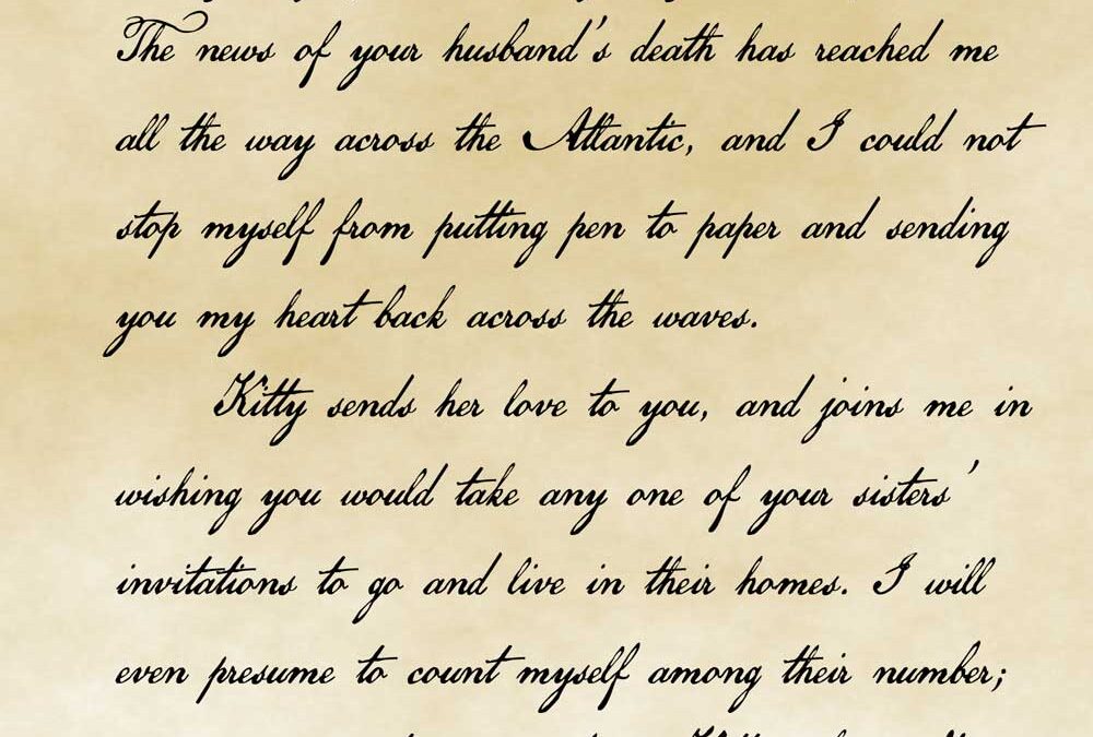 Page 1: 17 May, 1835 Dear Mrs. Wickham, Allow me to share my deepest condolences. I hope you will not think it rude for me to intrude upon your grief, as I imagine you must feel some. The news of your husband’s death has reached me all the way across the Atlantic, and I could not stop myself from putting pen to paper and sending you my heart back across the waves. Kitty sends her love to you, and joins me in wishing you would take any one of your sisters’ invitations to go and live in their homes. I will even presume to count myself among their number; you are my sister as much as Kitty, Lizzy, Jane, and Mary are, by marriage and by affinity. Lydia — if I may presume upon your patience once more to call you so familiarly — you are always welcome here in New York. A wonderful