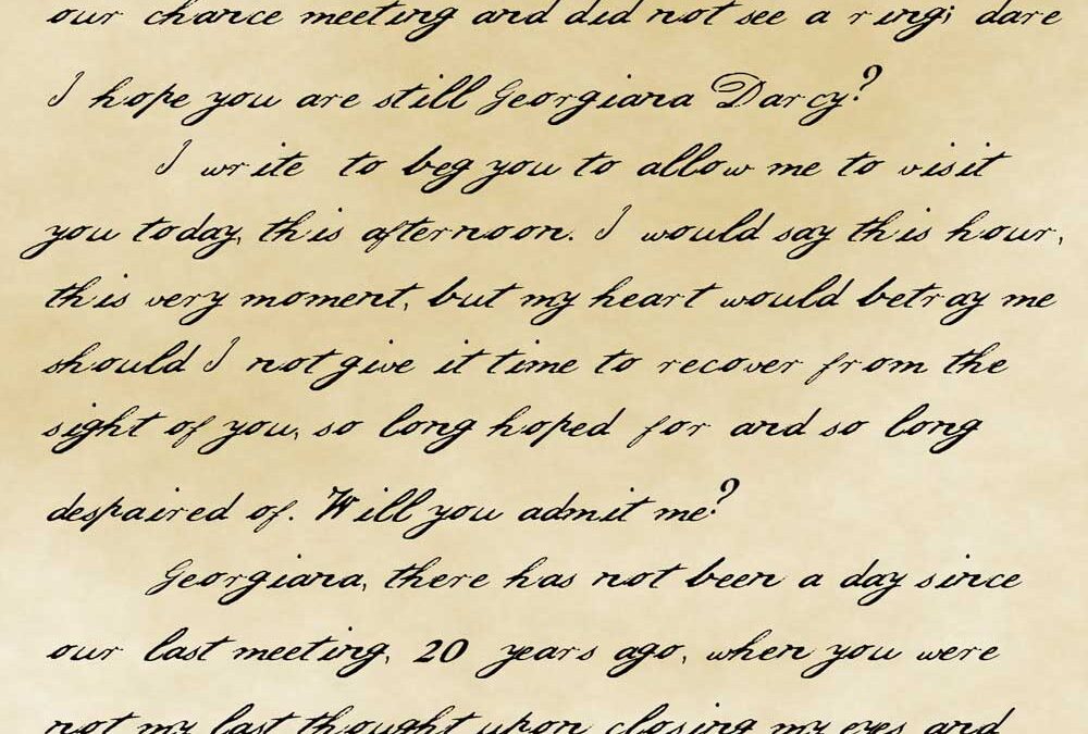 Page 1: 17 May, 1835 Dear Georgiana, Please forgive the familiarity. I could not bear to hear of you for some time, and so I do not know your married name. I must admit that I stole a glance at your left hand during our chance meeting and did not see a ring; dareI hope you are still Georgiana Darcy ?I write to beg you to allow me to visit you today, this afternoon. I would say this hour, this very moment, but my heart would betray me should I not give it time to recover from the sight of you, so long hoped for and so long despaired of. Will you admit me? Georgiana, there has not been a day since our last meeting, 20 years ago, when you werenot my last thought upon closing my eyes and my first upon their opening. Please allow me to explain. I severed our connection out of my own shame. It was not shame of your confession —your spirit and open heart are the qualities I treasure most, and your youthful exercise of them